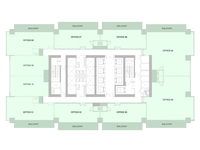 - 26 floors of office spaces, supported by modern high-speed elevators for efficient vertical access.
